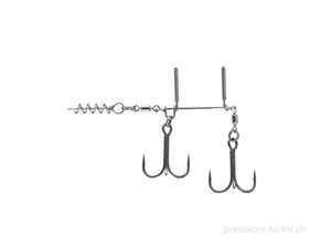 Der BKK BB Trigger-21 Superslide Rig Stinger Haken verfügt über ein schnelles und praktisches Bleiaustauschsystem, mit dem das Sinkverhalten des Köders angepasst werden kann. Dieses System hat mit Kunststoff ummantelte Stifte, die das Rig perfekt am Köderkörper halten. Das Hinzufügen des BB-Bleis entlang des Rigs stabilisiert auch die Schwimmaktion des Köders und erhöht seine Attraktivität während des Absinkens. Ideal für Stop-and-Go-Abrufe.