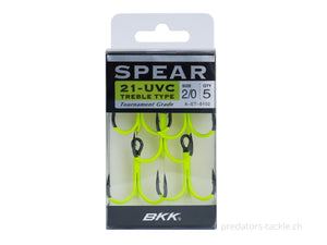 BKK Spear 21 UVC, die Chartreuse-Version der beliebten Spear-21-Drillinge vieler Angler für tiefes Süsswasser, zeichnet sich durch schlammige oder sandige Wasserbedingungen aus.