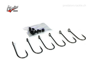 Spezieller Zusatzhaken für Spinnerbaits, Buzzbaits und Jigs. Schnell zu befestigen mit dem mitgelieferten Gummistopper, mit einem überdimensionalen Ring-Auge für bessere Beweglichkeit und einfache Gewichtwechsel. Auch Bestens für Cheburashka, Bottom Jig geeignet.