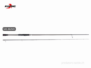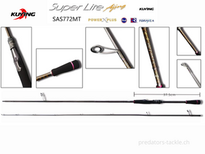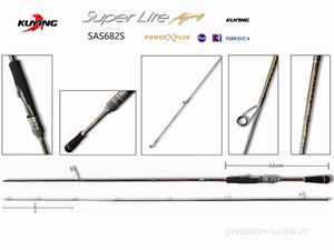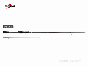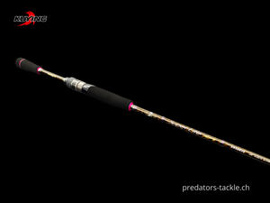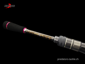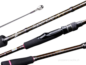 Die Super Lite Ajing Serie ist etwas ganz besonderes und die Solid Tip Spitzenteil sorgt für erhöhte Empfindlichkeit.. Sie vereinigt eine einzigartige Feinfühligkeit mit unglaublicher Leichtigkeit. Im Drill beweist sich diese sehr feine Rute auch bei grösseren Fische als sehr überzeugend. Es gibt wohl kaum eine bessere Spinnrute in diesem Preissegment. Gefertigt aus 50T Toray Japan Carbon, Fuji-Ringe und Rollenhalter. Beste Ausstattung , traumhaft leicht und mit unglaublichen Kraftreserven. Eine sehr beliebte Drop Shot Rute in der Schweiz auch für Texas und Carolina Rig sehr gut geeignet.