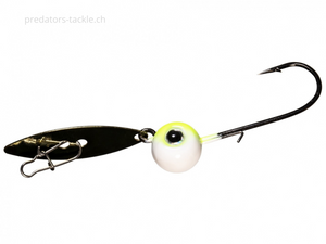 Seine geringe Grösse ermöglicht uns eine leisere Annäherung beim Betreten des Wassers und einen langsameren Fall, ohne das klassische hektische Schwimmen des Chatterbait Z-Man aufzugeben.