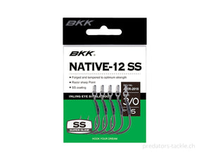 The BKK Native-12 is an auxiliary hook designed to replace traditional treble hooks and single hooks when reducing torsional forces is most needed. Features include an inward-facing, razor-sharp tip to ensure the best strike-to-land ratio, a forged shaft for increased strength and the super-smooth SS coating for lightning-fast penetration. It is designed with a high-density, solid-core braid that is stiff enough to maintain its shape over time while providing the softness necessary to absorb torsional forces that can occur when fighting trout and other salmonid species.