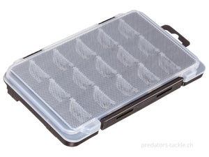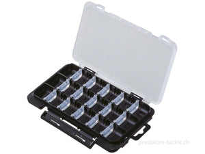 Das Light Game Case J ist eine kleine, flache Box und ist perfekt für die Hosentasche. Es können bis zu 18 Fächer eingeteilt werden. Zwei Boxen können aneinander geklippt werden! Meiho Angelgeräteboxen zählen seit 50 Jahren zu den hochwertigsten Boxen überhaupt. Ausschliesslich in Japan hergestellt, kann ein Qualitätsniveau garantiert werden.