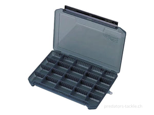 Die Versus VS 3020 sind einteilbare Köder- und Kleinteilebox, extra flach und stapelbar, haben ein Einhandbediensystem und überzeugen mit hoher Wandstärke. Mit den Boxen mit frei einteilbarer Aufteilung können Sie die Fachgrößen in Abständen von 3.2mm individuell gestalten. Extrem kleine Toleranzen zwischen Deckel und Fachwänden verhindern, dass selbst kleinste Gegenstände zwischen den Fächern hin- und her wandern. Zusätzlich haben diese Boxen das One-Touch-Open System mit der bequemen Einhandtaste.