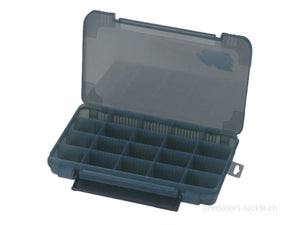 Die Versus VS 3043 sind grosse bruchfeste Köderboxen mit hoher Wandstärke für den sicheren Transport hochwertiger Kunstköder. Mit den Sortierboxen mit frei einteilbarer Aufteilung können Sie die Fachgrössen in Abständen von 3.2mm individuell gestalten. Extrem kleine Toleranzen zwischen Deckel und Fachwänden verhindern, dass selbst kleinste Gegenstände zwischen den Fächern hin- und her wandern. Zusätzlich haben diese Boxen das One-Touch-Open System mit der bequemen Einhandtaste.