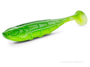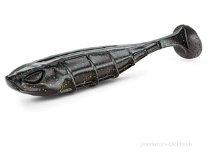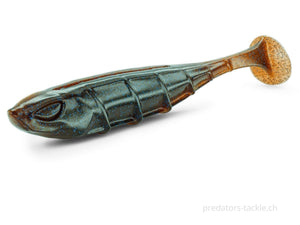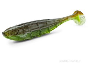 The VNM is a high-frequency paddle tail. It is also characterized by its slightly rolling action. The VNM works even on a light jig head or when sinking slowly.
