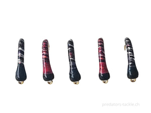 Alle Hegene werden mit einer Monofil von Stroft GTM 0.20mm mit Tragkraft von 4.2kg gebunden. Die Nymphen werden mit UV-Lack von Koni Battalia lackiert.