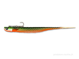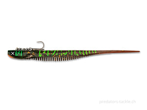 Le poisson en caoutchouc monté Monkey Lures Stalking Lui est très adapté à la pêche du sandre et du brochet.