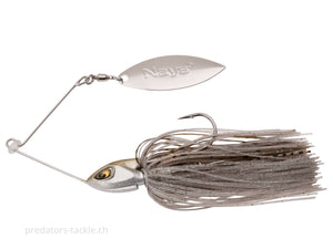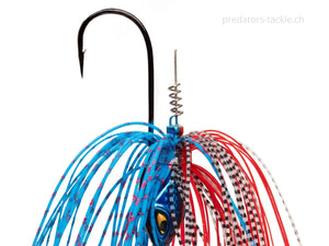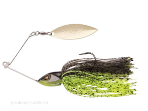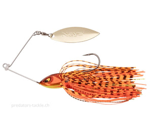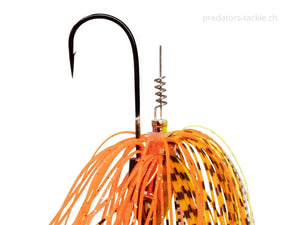 Le MZ RNNR taille M est équipé d'un Willowblade à roulement à billes et est disponible en deux poids différents. La lame crée non seulement d'incroyables ondes de pression qui peuvent être ressenties par les prédateurs même à distance, mais elle crée également de superbes reflets lumineux qui provoquent directement les morsures. Le fil robuste maintient tout en place et forme une connexion stable entre les composants. Grâce à sa tête surbaissée, le MZ RNNR a un centre de gravité bas, ce qui lui confère une conduite très stable. Personne ne peut échapper au regard agressif de cet appât et constitue donc une autre cible pour les prédateurs. Une jupe volumineuse vibre et donne à l'appât une silhouette encore plus grande, tout en dissimulant l'hameçon de manière fiable. Le point fort de l'appât est caché sous la jupe frangée. Un baitcrew vous permet de monter votre trailer facilement et augmente la durée de vie de vos softbaits car l'appât ne s'arrache pas de l'hameçon par les coups violents portés à la tête pendant le combat. Cela signifie que vous pouvez déjouer en toute sécurité plusieurs prédateurs avec un caoutchouc plus souple et en même temps disposer d'une remorque plus mobile et garantissant encore plus de morsures.