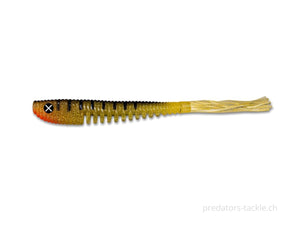 Monkey Lures Hairy Lui Gummifische. Die Softbaits aus dem Hause Monkey Lures können sehr gut für das Vertikalangeln auf Zander, Hechte und Barsche eingesetzt werden. Die Fransen am Ende des Kunstköders sorgen bereits bei leichten Bewegungen für ein verführerisches Köderspiel. Die Aussparungen an der Unterseite des Kunstköders machen ihn sehr flexibel und vereinfachen das Einfalten des Köders im Raubfischmaul. Das grosse X-Auge dient als Zusatzreiz und leitet die Anbisse auf den Kopfbereich. Das Salz und das Garlic-Flavour sprechen ausserdem den Geruchssinn der Raubfische an.