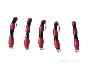 Alle Hegene werden mit einer Monofil von Stroft GTM 0.20mm mit Tragkraft von 4.2kg gebunden. Die Nymphen werden mit UV-Lack von Koni Battalia lackiert.