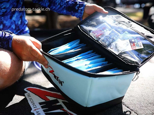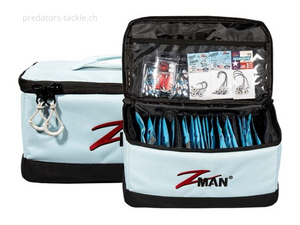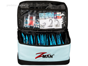 Der Bait BlockZ von Z-Man fasst bis zu 35 Packungen ElaZtech Gummiköder und bietet Anglern damit eine praktische, kompakte Ködertasche mit verstellbaren Trennwänden zur individuellen Anpassung der Aufteilung. Der Deckel mit Reissverschluss und der Griff an der Oberseite ermöglichen einen einfachen Transport. Der Bait BlockZ ist aus robustem, wasserdichtem 600 Denier-Gewebe gefertigt, bietet mit einem robusten gummierten Boden zusätzlichen Halt. Eine durchsichtige Innentasche und eine Netztasche an der Außenseite nehmen Zangen, Jigs, Snaps oder Vorfachspulen auf.